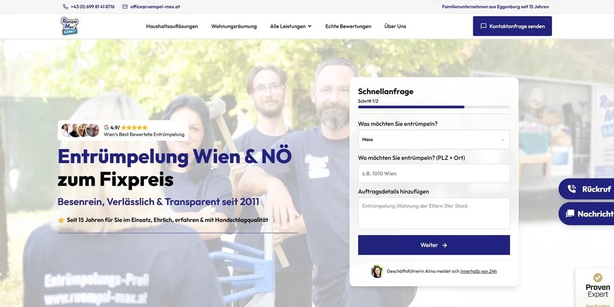 Zurück in Europa hab ich das sofort mit einer Entrümpelung in Wien getestet. Ergebnis im ersten Monat: 1 034 Web-Besucher & 64 Anfragen.